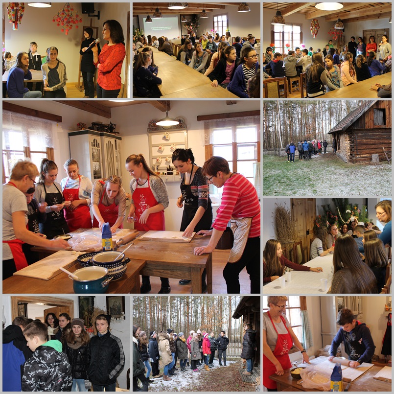 Uczniowie podczas wizyty z skansenie zwiedzili sektor Lasowiaków, zamieszkujących niegdyś teren północnej części obecnego województwa podkarpackiego. Następnie wzięli udział w zajęciach tematycznych pt. „Wokół Świątecznego Stołu – wigilia w skansenie dawniej i dziś”. Podczas zajęć wspólnie z prowadzącymi dyskutowali o dawnych obyczajach bożonarodzeniowych oraz przygotowywali potrawy wigilijne, by na koniec zasiąść do wspólnej wigilii. Uczniowie z zaciekawieniem pytali o dawne obyczaje i wiele dowiedzieli się jak dawniej przeżywano okres Bożego Narodzenia oraz o relacjach i ogromnym szacunku okazywanym najstarszym w rodzinie. Spotkania w skansenie bardzo podobały się uczestnikom, a wspólne podsumowanie podjętych podczas projektu działań, kolędowanie i przygotowywanie wigilii stworzyło wyjątkowy nastrój.